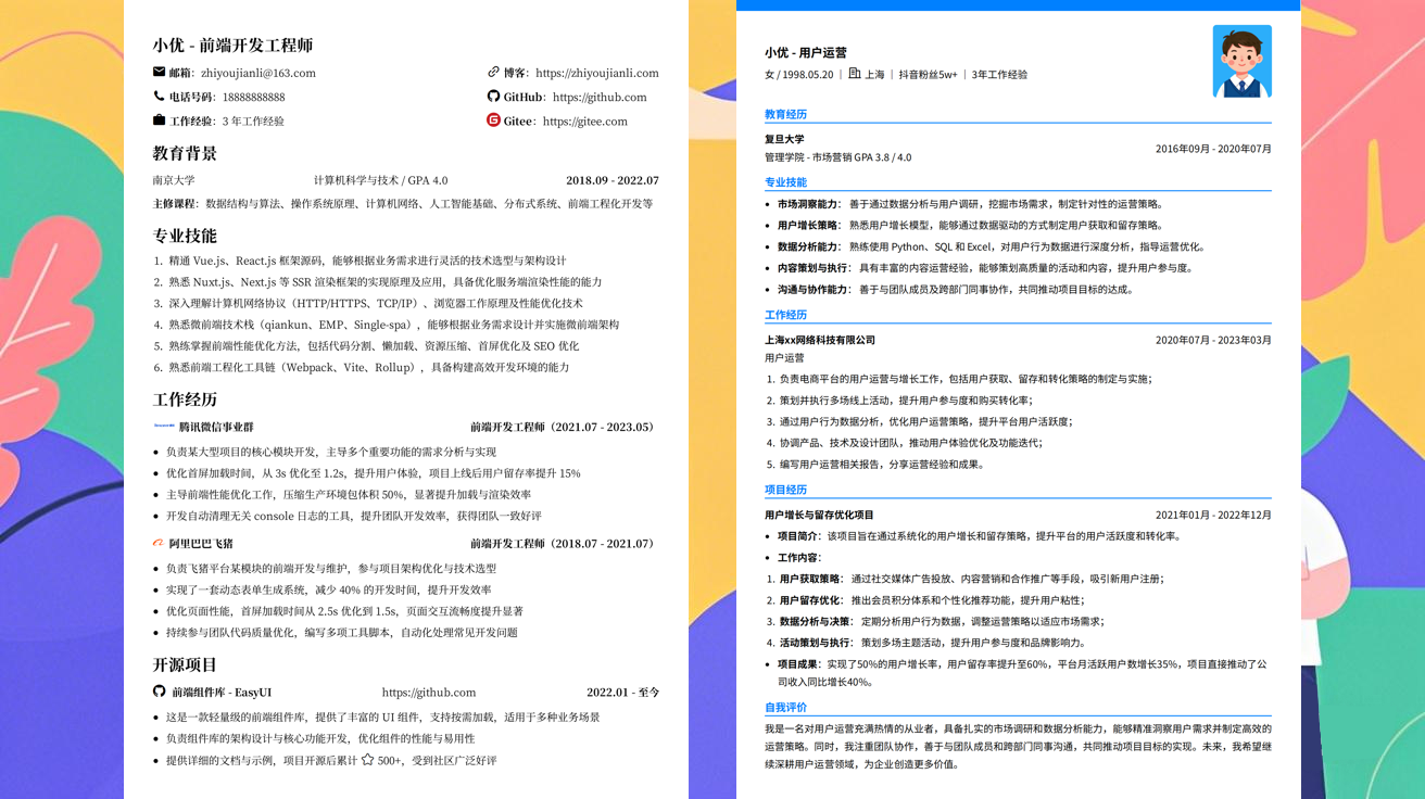 求职攻略 求职规划梦想和工作怎么写简历(精选极简模板185款) 在当今竞争激烈的就业市场中,撰写一份能够突出个人优势、展现职业素养的简历至关重要。当前,各行各业都呈现出蓬勃发展的态势,特别是在科技、金融、教育等领域的就业前景十分广阔,这些行业不仅能够提供稳定的职业发展路径,还能为... nzp122 2025-09-08 评论(0)条 阅读2次